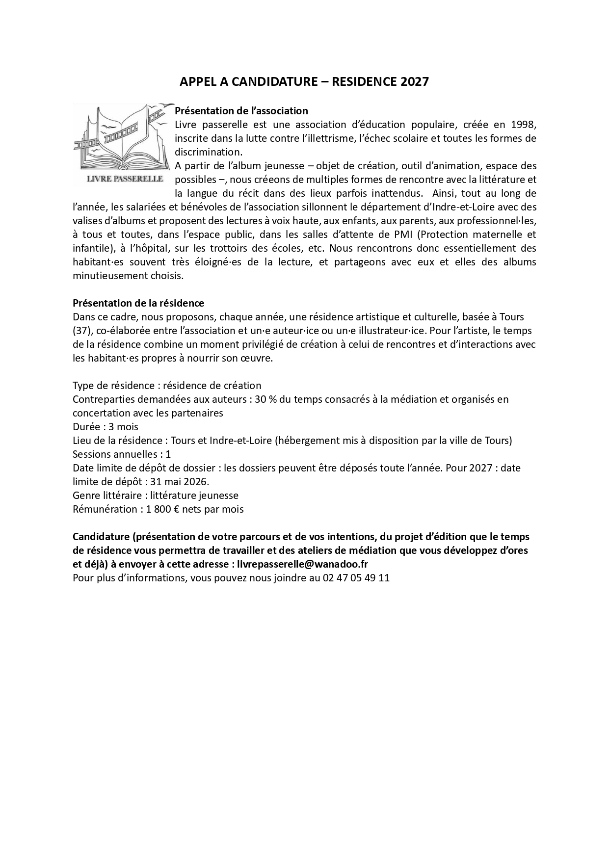 RESIDENCE 2027 – Appel à candidature